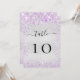 Silver purple violet glitter table number card