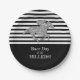 Party paper plates - in 2 sizes - feature a race horse in faux silver glitter on black and white stripes at the top and a solid black area at the bottom for your custom personalisation. Change the wording, change the fonts, change the font colours for your party, birthday party, retirement party, Derby party, Derby bridal shower and more. MATCHING items in our collection.