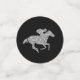 A silver glitter racehorse on the front and back of black confetti circles in 3 sizes are perfect for your Derby themed bridal shower. MATCHING items in our collection.