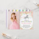 Silver Rainbow Unicorn Pink Floral Birthday Invitation