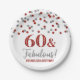 60 and fabulous birthday party plates with silver and red glitter pattern confetti.