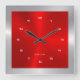Silver & Red & Metallic Stainless Steel Square Wall Clock