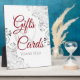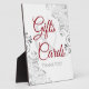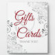 This beautiful self standing sign or plaque will make it easy for your wedding guests to know where to leave their gifts and cards. Features a simple yet elegant design with red and grey text on a white background with a Silver faux foil floral border.