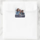 These elegant Christmas stickers feature your own photo, with the word "rejoice" appearing in modern silver typography. There is also a spot to personalise with your family name, on a midnight blue background.