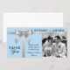 © 2013 Socialite Designs. Elegant wedding thank you photo card with silver ribbon and light blue background. Ribbon can be moved, resized. Blue area can also be moved to the left or right if you have a smaller or larger photo. Do you have a colour combination you would like on this thank you photo card? Send Socialite Designs a message to let us know and we will create it for you.