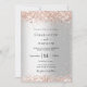 A modern, formal wedding invitation. A faux silver looking background. Decorated with rose gold faux sparkles, confetti. Personalise and add your names and party details.