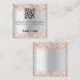 A faux silver looking background, black text. Decorated with rose gold faux glitter.
