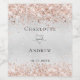 A faux silver looking background, decorated with rose gold confetti. Personalise and add your names and the wedding date.