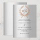 A faux silver looking background. A rose gold wreath. Personalise and add your monogram initials, names, and details.