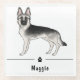 Silver Sable German Shepherd And Paw Custom Name Glass Coaster