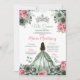 Silver Sage Green and Pink Princess Mis Quince Invitation