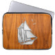 Silver Sail Boat on Teak Veneer Decor Laptop Sleeve
