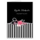 A trendy black and white stripes hair salon note card with a pair of elegant faux silver coloured hair cutting scissors, embellished with a sprig of beautiful pink and gold flowers. Personalise this gorgeous hair and beauty design by adding the name of the hairstylist or beautician. Flat printed image, NOT metallic.