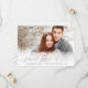 This elegant save the date features shimmering silver script in faux foil with a striped backer. Upload your own photo and customise the information to include your wedding details.