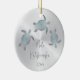 This Hawaiian Christmas tree decoration features elegant silver tribal turtles on a faux silver foil background, a Mele Kalikimaka text in an elegant handwritten script and a custom year on the front side. Change the custom family photo at the reverse side.