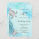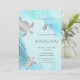 This invitation for her features silver turquoise blue ink watercolor background. Elegant feminine nautical design for a birthday at the beach.