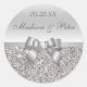 Personalised elegant custom silver wedding stickers, for favours or envelope seals, with a beautiful printed silver sequins pattern, a cute shiny silver printed bow and ribbon and pretty printed diamond bling jewel. Text, font and colour of font can all be customised. If you need assistance customising your product please contact me through my store. I will be happy to help. I have matching products in my store.