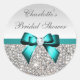 Silver Sequins Teal Diamond Bow Bridal Shower Classic Round Sticker