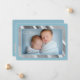 Introduce your baby in style with this trendy, new design. The blue invitation is trimmed in shimmering silver.