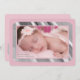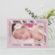 Introduce your baby in style with this trendy, new design. The pink invitation is trimmed in shimmering silver. Just add your baby's photo to make it yours.