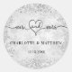 Silver snow names mr mrs elegant winter wedding classic round sticker