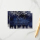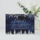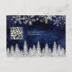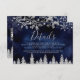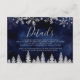 Time to celebrate your winter wonderland wedding theme with this luxury silver glitter snowflakes sparkles and silver glitter pine tree forest details cards on an elegant festive navy blue watercolor background, featuring a modern cool script font typography.