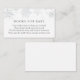 A book request insert card for baby shower. Featuring silver snowflakes and poem: "ONE SMALL REQUEST, WE HOPE NOT TOO HARD