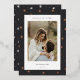 Share holiday greetings with these photo Christmas cards featuring your favourite photo set on a modern and minimal background of rose gold foil snowflakes on rich ash black. An editable message area lets you customise your holiday greeting in modern lettering. Add your family name or names beneath.