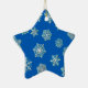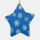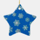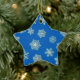 Silver snowflakes on a cobalt blue background ceramic tree decoration
