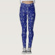 Here are beautiful and fun leggings for the Holiday Season, or all winter long! They feature a pattern of sparkling silver snowflakes on a field of deep royal blue.