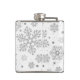 Silver snowflakes on white hip flask