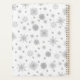 Christmas Classic silver glitter snowflakes and dots glow white pattern, filled with multiple unique silver-grey stars, dots and snowflake geometric shapes, faux shining silver glitter and glowing white colour, white background. This silver snowy sky evening winter feel snowflakes artwork, is perfect for winter season Christmas holidays decor.
