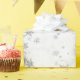 Silver snowflakes wrapping paper featuring large and shimmering silver snowflakes on a white Carrera marble background.