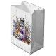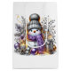 A Medium Gift Bag Designed With A Snowman With Silver Hat And Purple Scarf