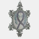 The guardian angel art ornament features the painting of a silver sparkle awareness ribbon angel. Silver sparkle awareness angel ribbon art can be personalised with custom messages to make great cause ornaments or pendants for fundraisers, awareness Christmas or holiday gifts, or other special events or occasions.