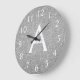 Silver Sparkle Glitter Monogram Name & Initial Large Clock