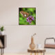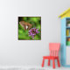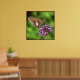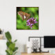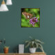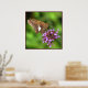 This poster features a Silver Spotted Skipper drinking nectar from verbena blossoms. He is named for the large irregular silver patch on his wing. His colouring is rather dull, shades of brown, gold and orange. His black eyes are huge. The purple, pink and magenta blossoms and luminous green and yellow background lend a magical feeling to this photo.