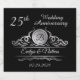 Decorative silver ornament on black background 25th Wedding Anniversary wine label