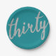 Silver Teal 30 Birthday Party Glitter "Thirty" Paper Plate