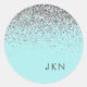 Silver Teal Aqua Blue Girly Glitter Monogram Classic Round Sticker
