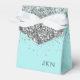 Silver Teal Aqua Blue Girly Glitter Monogram Favour Box