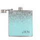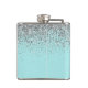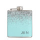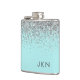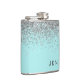 Silver Teal Aqua Blue Girly Glitter Monogram Hip Flask