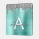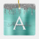 Silver and Teal Aqua Blue Faux Foil Metallic Sparkle Glitter Brushed Metal Monogram Name and Initial Christmas Ornament. This makes the perfect sweet 16 birthday, wedding, bridal shower, anniversary, baby shower or bachelorette party gift for someone that loves glam luxury and chic styles.