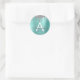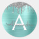 Silver Teal Glitter Brushed Metal Monogram Name Classic Round Sticker