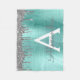 Silver and Teal Aqua Blue Faux Foil Metallic Sparkle Glitter Brushed Metal Monogram Name and Initial Fleece Blanket. This makes the perfect sweet 16 birthday, wedding, bridal shower, anniversary, baby shower or bachelorette party gift for someone that loves glam luxury and chic styles.