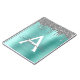 Silver Teal Glitter Brushed Metal Monogram Name Notebook