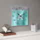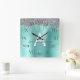 Silver Teal Glitter Brushed Metal Monogram Name Square Wall Clock