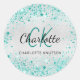 A faux silver metallic looking background. Decorated with teal, sea green faux glitter dust. Personalise and add your first name, monogram initials and full name.