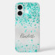 Silver teal glitter green monogram name Case-Mate iPhone case