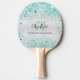 Silver teal glitter green monogram name ping pong paddle